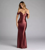 Elastic satin off shoulder collar with adjustable thin shoulder straps, back zipper, side stitching, pleated mermaid and floor Prom Dresses - US 2 / UK 6 / EU 32