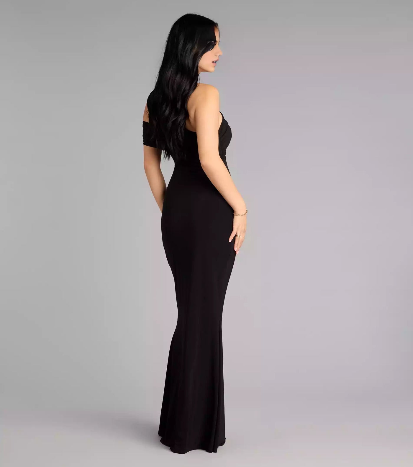 Elegant and exquisite single shoulder neckline with hollowed out mermaid silhouette and floor skirt Prom Dresses - US 2 / UK 6 / EU 32
