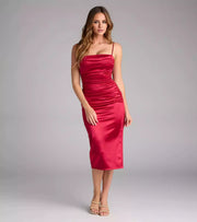 Elegant elastic satin square neckline with adjustable thin shoulder straps, back zipper for snug fit, side slits Prom Dresses - US 2 / UK 6 / EU 32