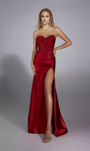 Elegant metallic luster elastic satin slim fit long strapless corset with back lace up slit Prom Dresses - US 2 / UK 6 / EU 32