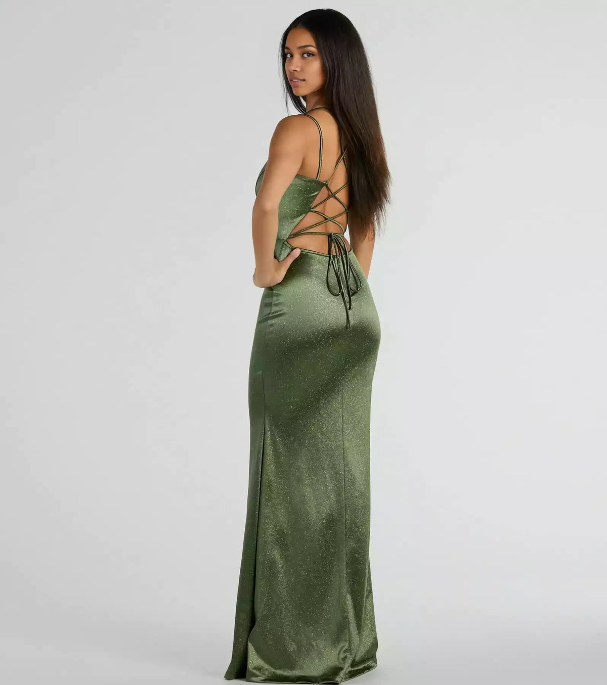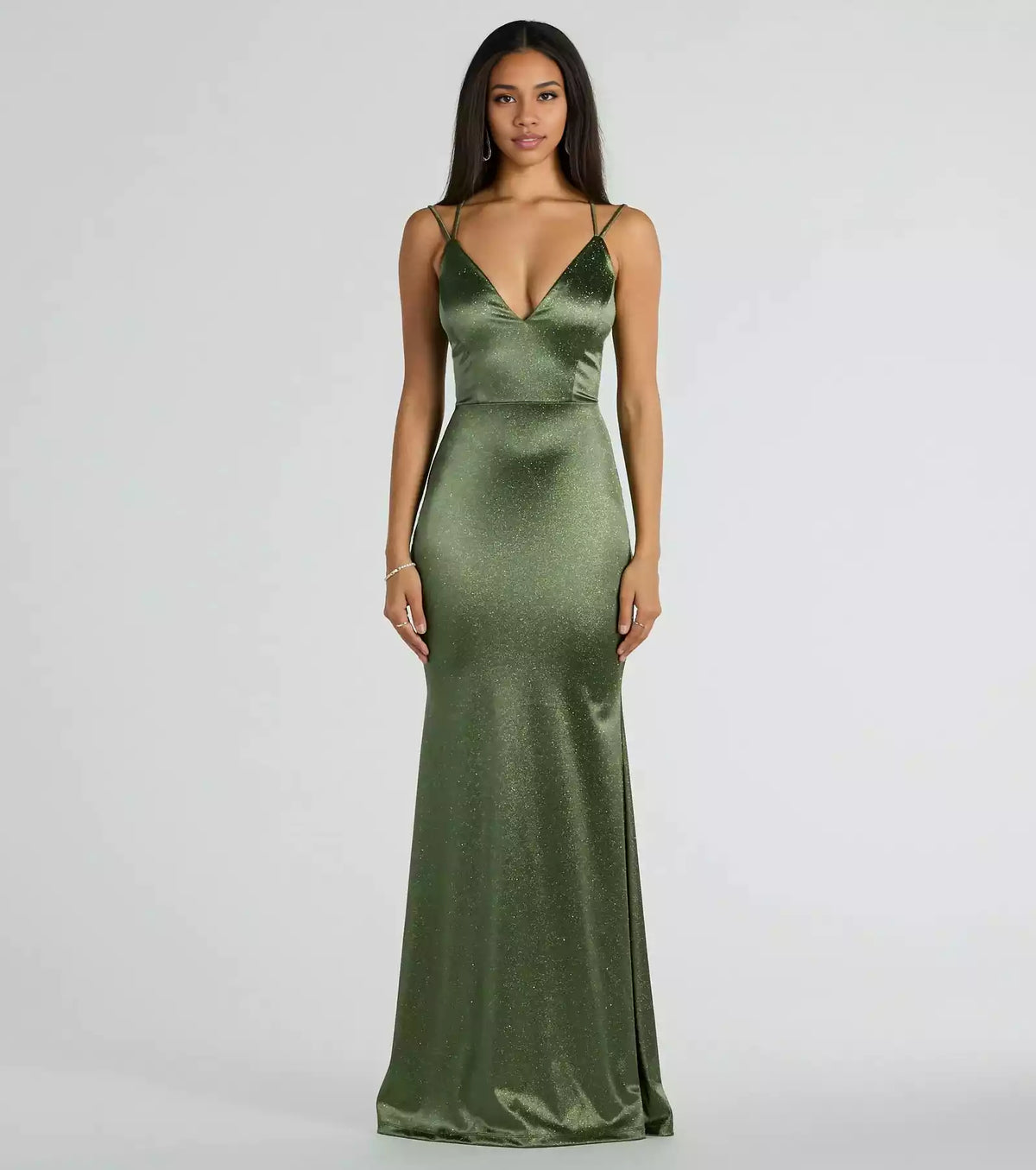 Elegant sparkling satin V-neck with zip back and slim silhouette, lined chest Prom Dresses - US 2 / UK 6 / EU 32