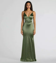 Elegant sparkling satin V-neck with zip back and slim silhouette, lined chest Prom Dresses