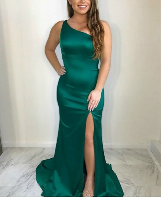 Emerald Green Mermaid One Shoulder Long Prom Dresses With Back Cut Out - US 2 / UK 6 / EU 32