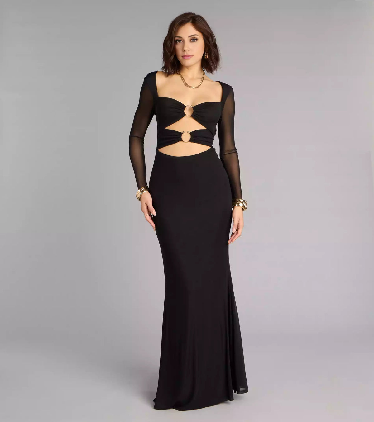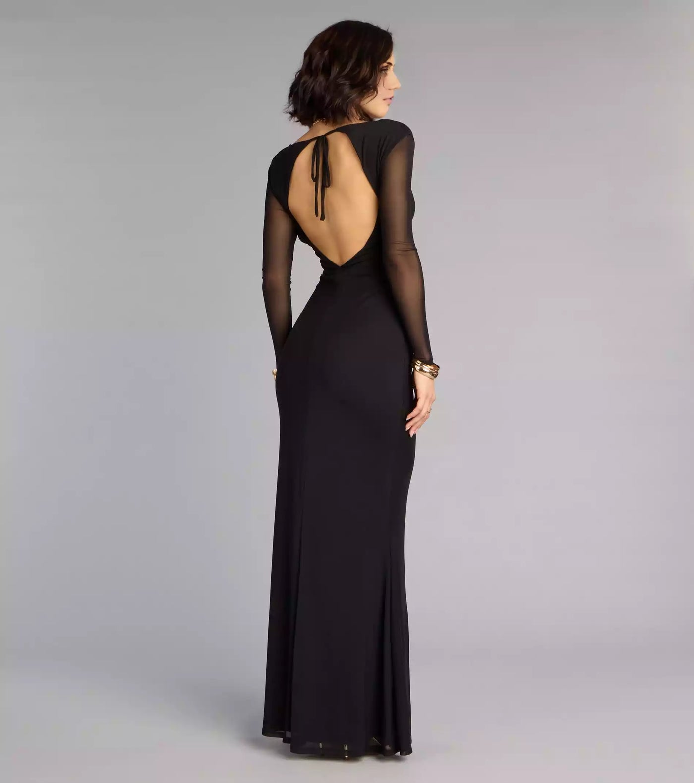 Enchanting deep V-neck slim fit sheer long sleeved waist with hollowed out lace up details mermaid silhouette Prom Dresses - US 2 / UK 6 / EU 32