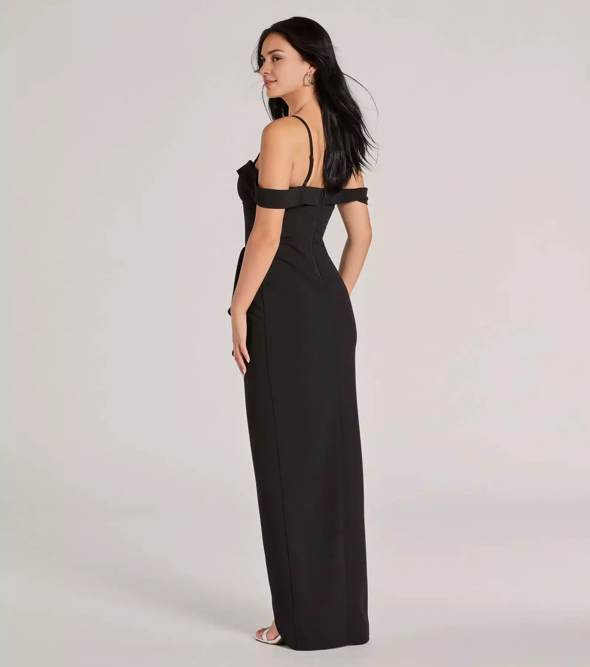 Exquisite crepe off shoulder heart-shaped neckline with adjustable thin shoulder straps, front slit with ruffle edge Prom Dresses - US 2 / UK 6 / EU 32