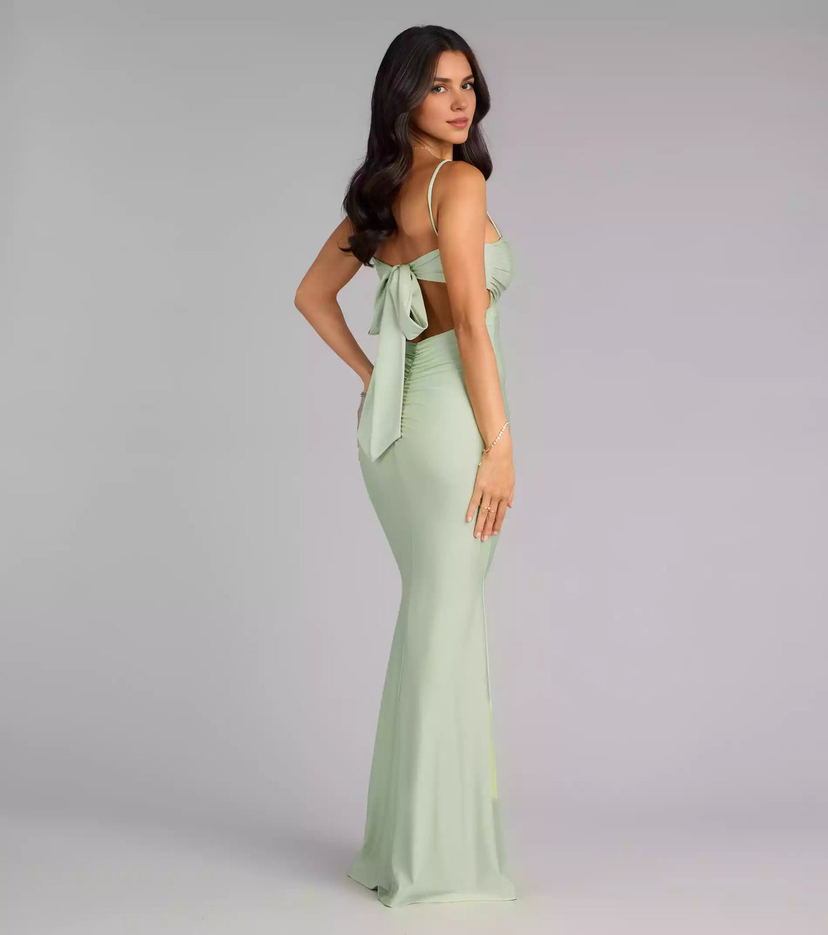 Exquisite smooth knitted square neckline with thin shoulder straps, mermaid and floor skirt, Prom Dresses - US 2 / UK 6 / EU 32