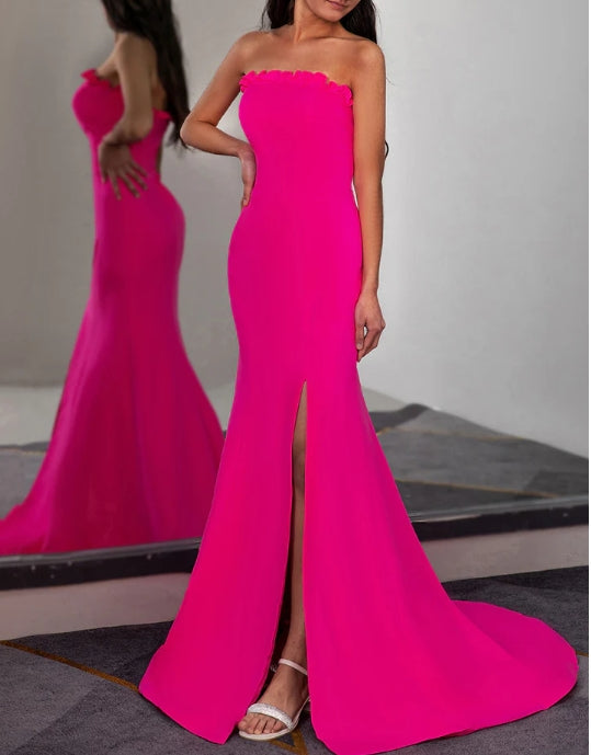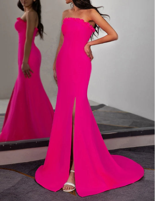 Fitted Strapless Prom Dress with Ruffle