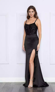Gorgeous satin long corset with slim shoulder straps and side slits showcasing elegant temperament Prom Dresses