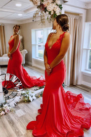 Gorgeous Trumpet Red Formal Dress with V Cut Back