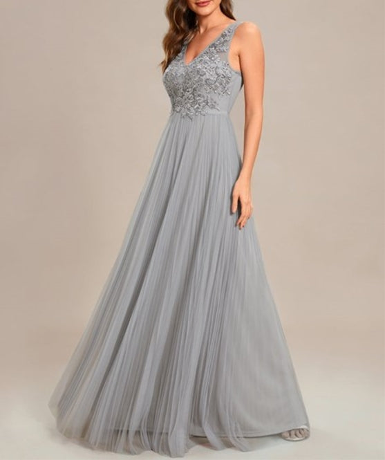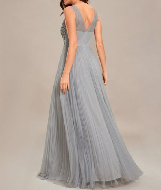 Grey Graceful Chiffon V-Neck A-Line Prom Gown
