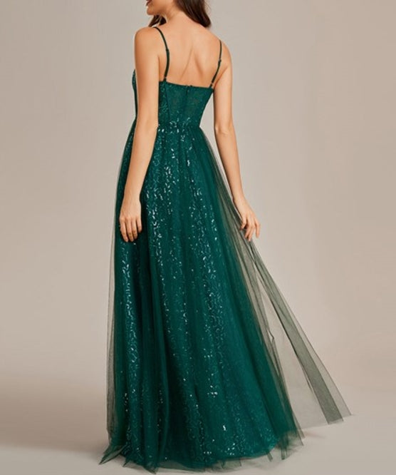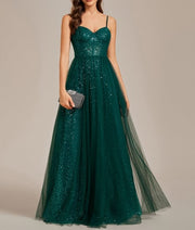 Dark Green Elegant Sequin Empire Waist Prom Gown