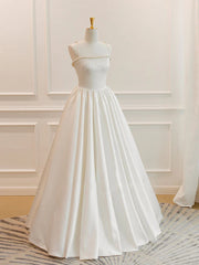 Ivory Satin Long Prom Dress, ivory Long Formal Dresses