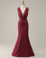 Mermaid V-Neck Long Glitter Prom Dress With Pleating