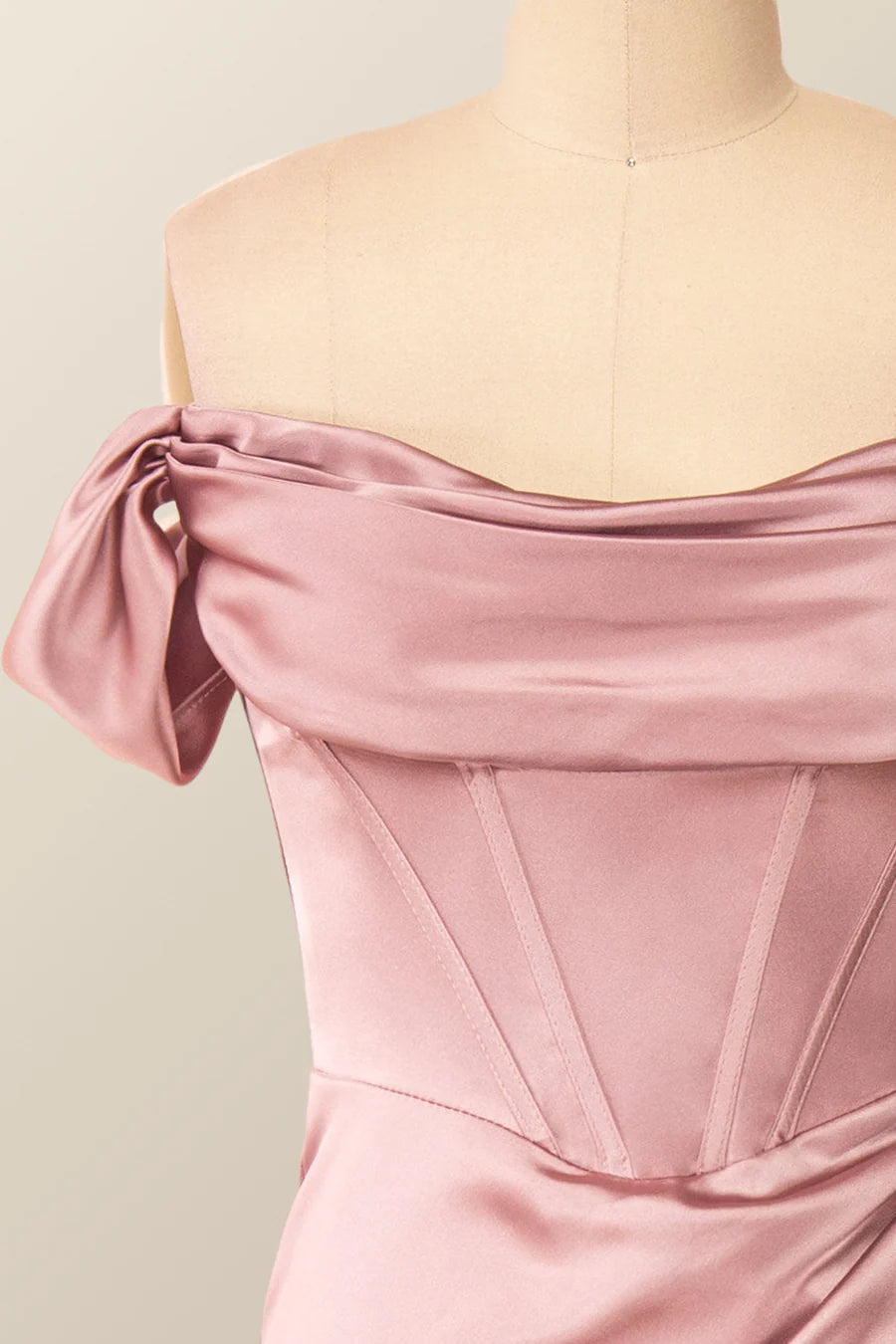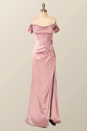 Off the Shoulder Blush Mermaid Long Prom Dress with Slit