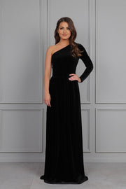 One Shoulder Dress Formal Dress Velvet Dress Prom Dress Slit Dress Black Maxi Dress Elegant Dress