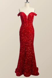 Off the Shoulder Red Sequin Mermaid Prom Dress