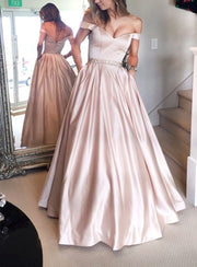 Pink Off The Shoulder Formal Long Ball Gown Dresses With Pockets
