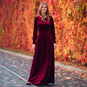 Plum Burgundy Velvet Maxi Dress Evening and New Year’s Wedding Gown