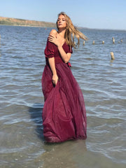 Prom dress long burgundy Tulle wedding dress Formal evening dress - US 2 / UK 6 / EU 32