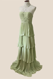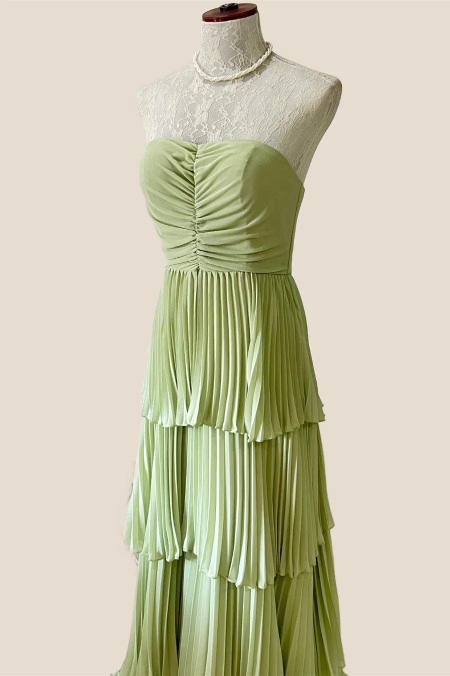 Sage Green Chiffon Pleated Chiffon Tiered Prom Dress