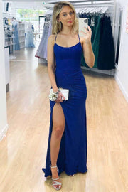 Scoop Neck Lace-Up Long Formal Dress with Slit