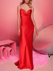 Sheath/Column V-Neck Sleeveless Floor-Length Evening Dress With Ruffles