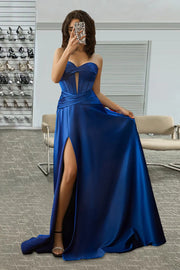 Slit Royal Blue Prom Dress with Keyhole - US 2 / UK 6 / EU 32