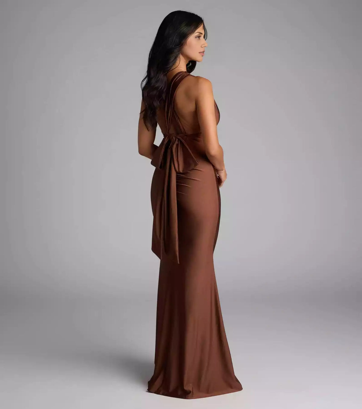 Smooth knitted high slit mermaid silhouette and floor skirt Prom Dresses with full charm - US 2 / UK 6 / EU 32
