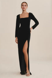 Square Neck Velvet Side-Slit Velvet Dress Long Sleeve Velvet Dress Black Christmas Velvet Dress Velvet Prom Dress