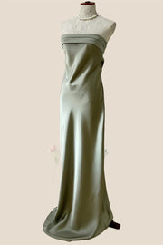 A-Line Off-the-Shoulder Strapless Sage Sheath Prom Dress