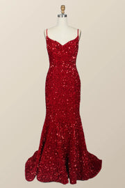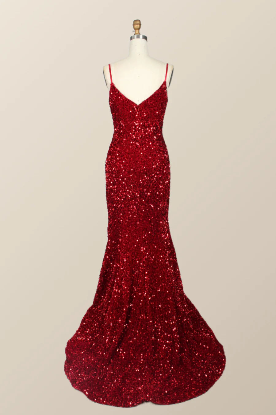 Straps Red Sequin Mermaid Long Prom Dress - US 2 / UK 6 / EU 32