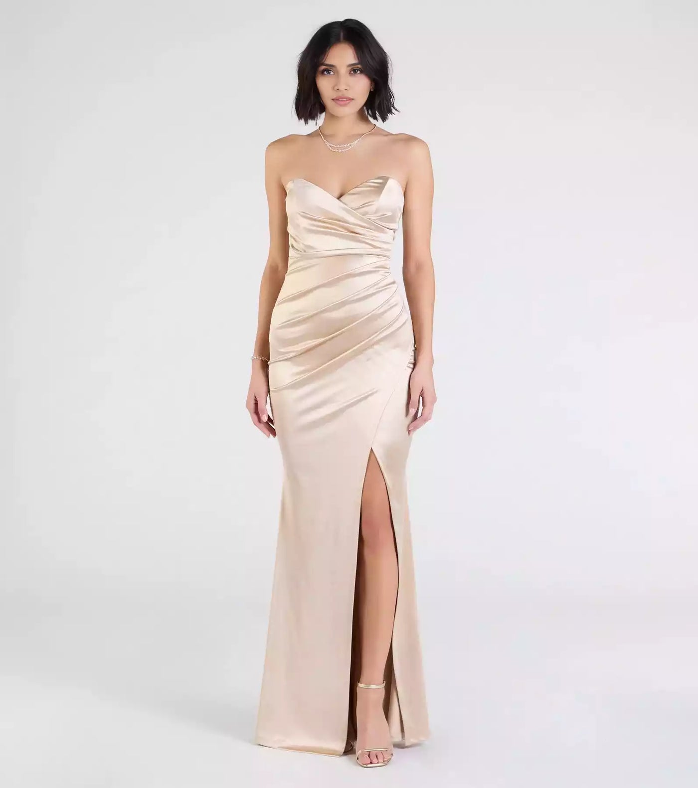 Stunning stretch satin strapless heart-shaped neckline back zipper high front slit mermaid Prom Dresses - US 2 / UK 6 / EU 32