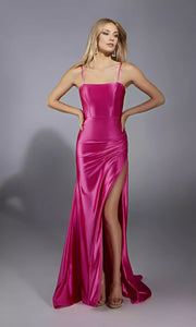 Stylish slim fit long backless thin shoulder strap with side slits Prom Dresses