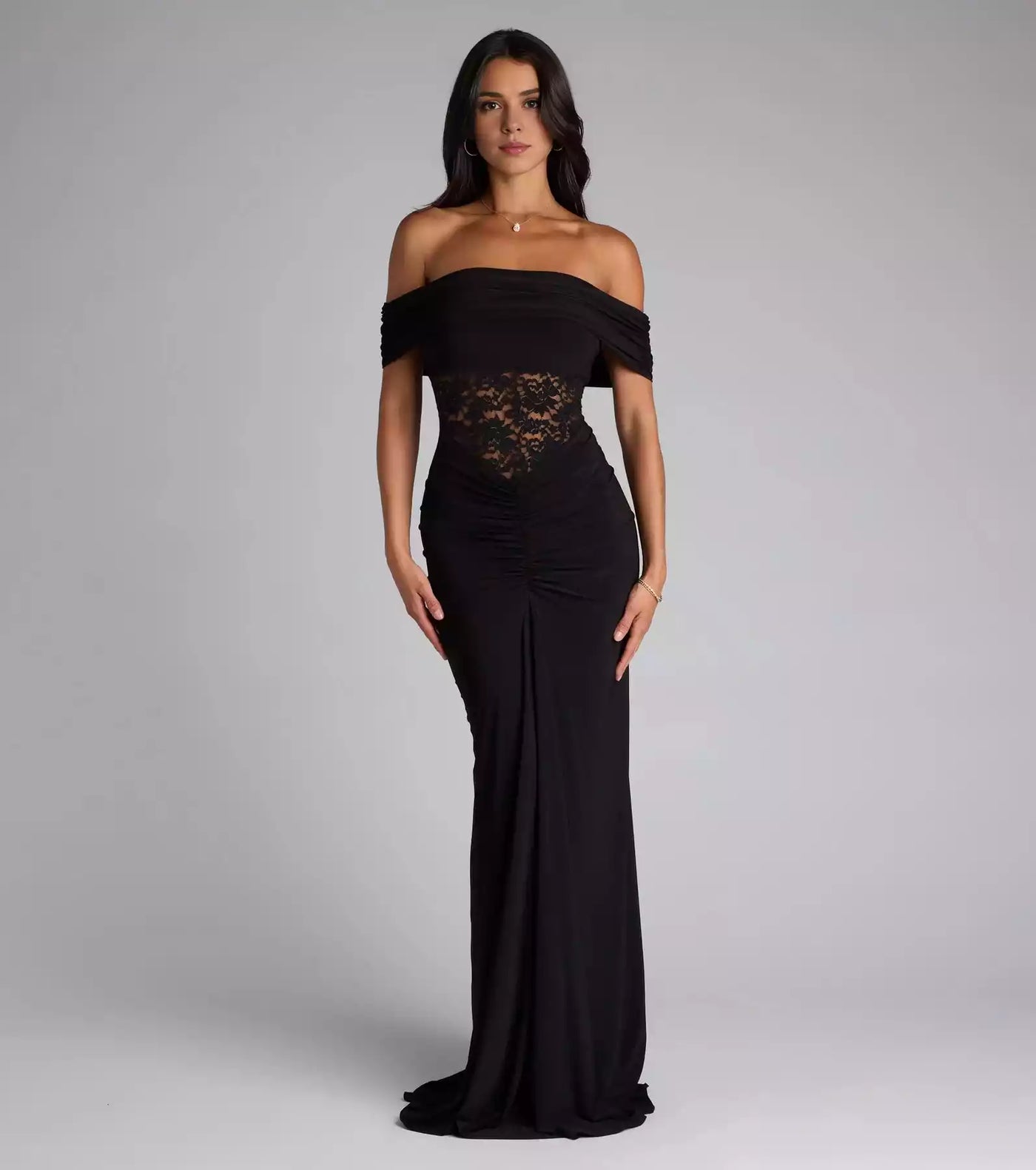The eye-catching knitted elastic lining, off shoulder sheer lace corset, mermaid silhouette Prom Dresses - US 2 / UK 6 / EU 32