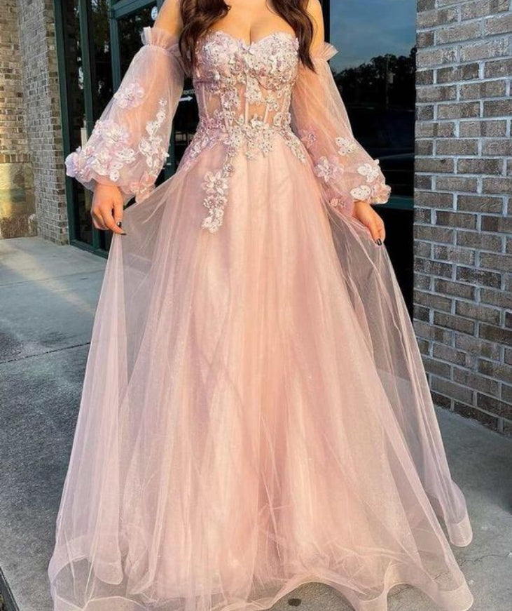 Tulle Strapless Puff Sleeve A-Line Prom Dress