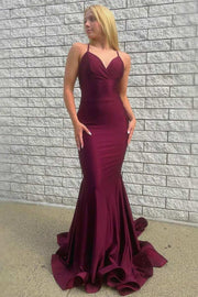 V-Neck Lace-Up Back Trumpet Long Prom Gown