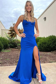 V-Neck Lace-Up Long Formal Dress with Slit - US 2 / UK 6 / EU 32