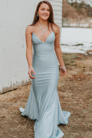V-Neck Lace-Up Trumpet Long Formal Dress - Grey