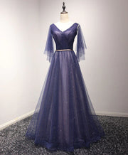 V Neck Long Purple Prom Dress Purple Long Evening Dress