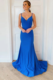 V-Neck Spaghetti Strap Mermaid Long Formal Dress