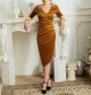 Velvet Prom Midi Dress Prom Dress Mother Of Bride Dress Cocktail Dress For Wedding Guest Gold Velvet Dress For Woman
