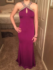 Violet Jewel Embellished Backless Long Floor Length Prom Dress