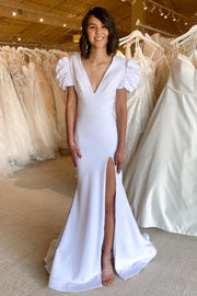 White Plunge V Cutout Back Mermaid Long Formal Dress