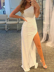Women's Sparkling Sheath/Column Sequin One-Shoulder Sweep/Brush Train Long Prom Dresses