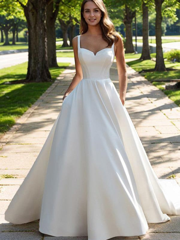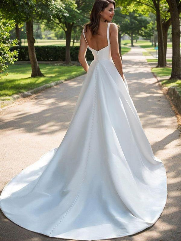A-Line/Princess Satin Straps Sleeveless Court Train Corset Wedding Dresses - US 2 / UK 6 / EU 32