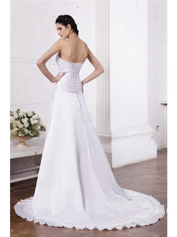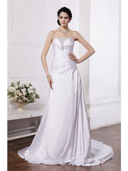 A-Line/Princess Strapless Sleeveless Beading Ruffles Long Silk like Satin Wedding Dresses - US 2 / UK 6 / EU 32