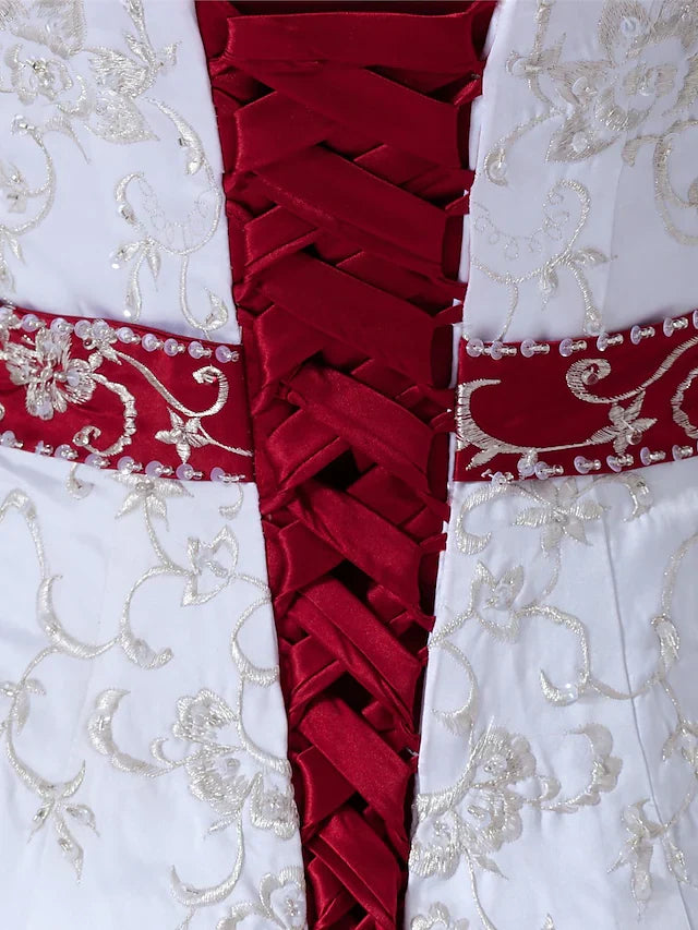 A-Line Wedding Dresses Halter Neck Chapel Train Satin Regular Straps with Sashes Ribbons Beading Embroidery - White / US 2 / UK 6 / EU 32
