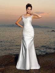 Trumpet/Mermaid Scoop Beading Sleeveless Long Satin Beach Wedding Dresses