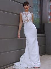 Trumpet/Mermaid Sleeveless Applique Scoop Satin Court Train Wedding Dresses - US 2 / UK 6 / EU 32