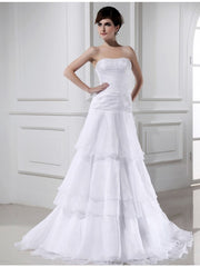 A-Line/Princess Beading Sleeveless Organza Strapless Long Wedding Dresses - US 2 / UK 6 / EU 32